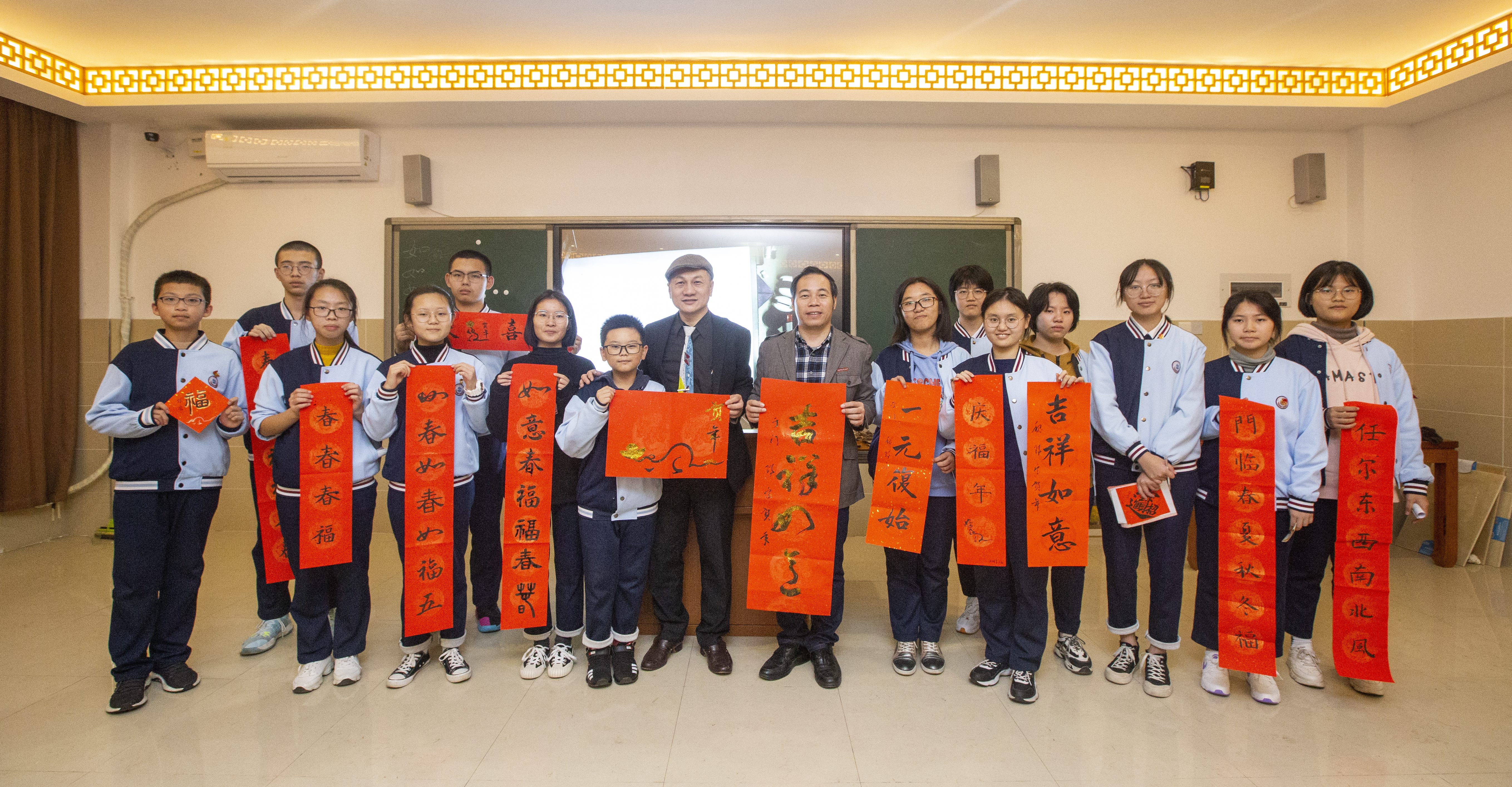 当天,魏瑞宗还为在场的学生讲解了书法在春联中的运用。据介绍,魏瑞宗已经连续四个月走进平潭师大附中,每个月一堂课,让学生感受到了书法的乐趣。