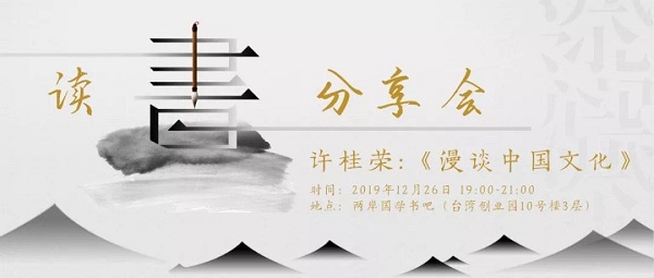 2019-12-25 08:22:34 来源:平潭网 作者:林婷平潭网12月25日讯12月26日(本周四)19:00-21:00,两岸国学中心新一期读书分享会将会在两岸国学书吧举办。本期分享者为中国政法大学法学博士、台湾青年许桂荣。