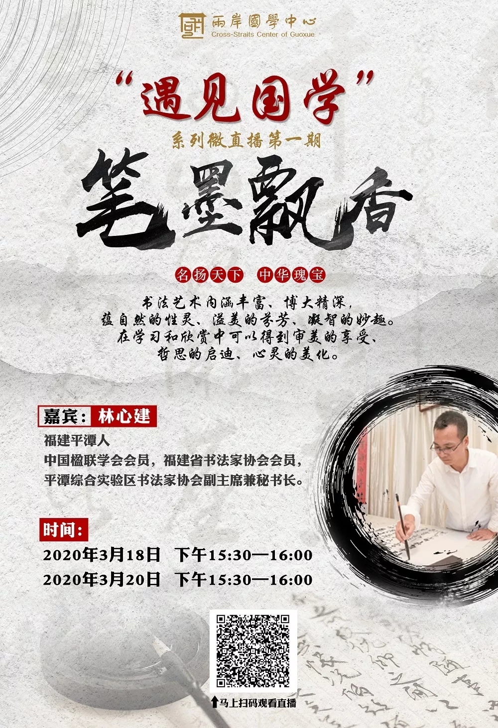 2020-03-17 09:34:21 来源:平潭融媒体中心 作者:陈耀峰原标题:“遇见国学”系列微直播第一期“笔墨飘香”即将开播!