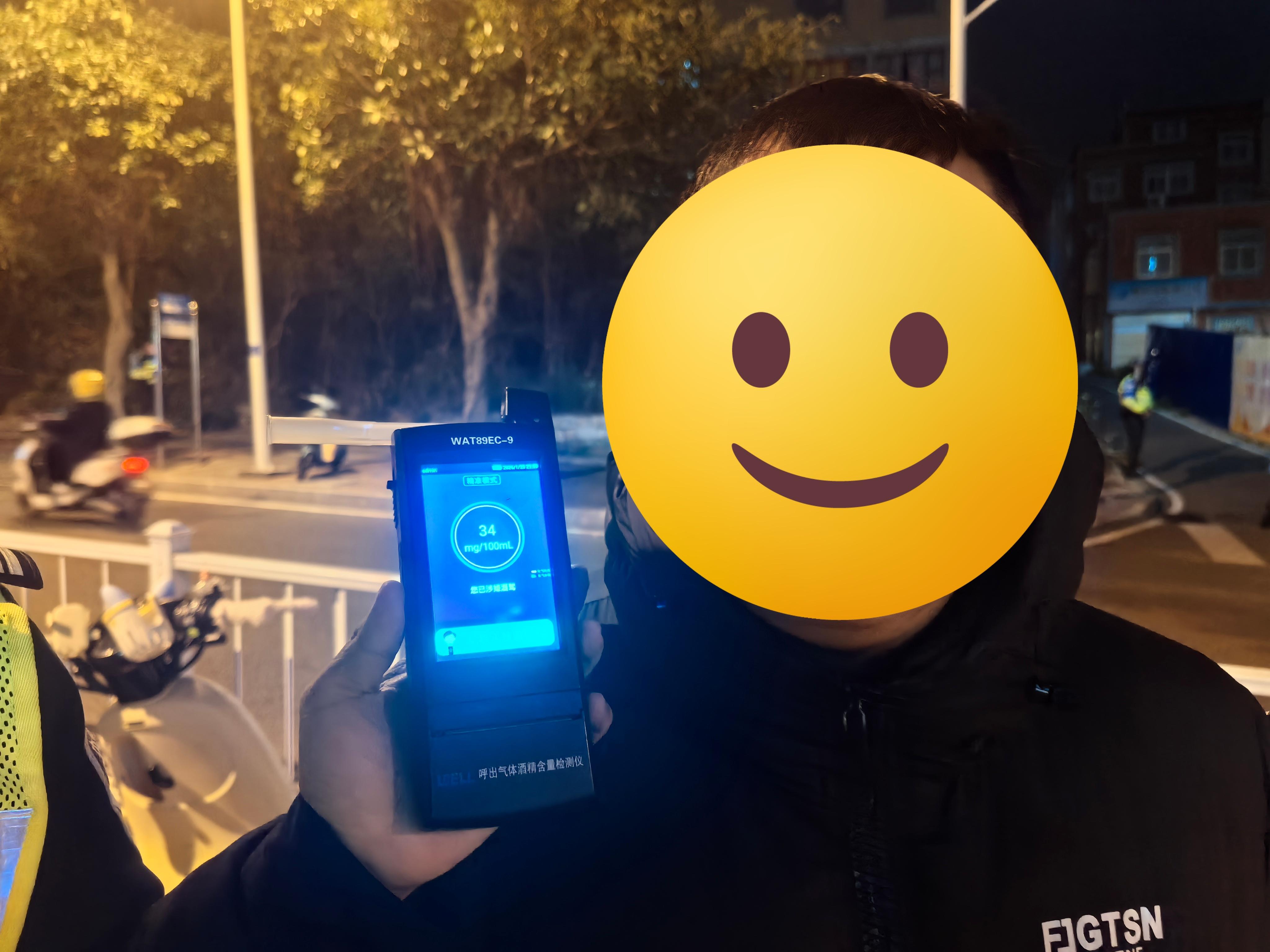 酒精测量结果:34mg/100ml