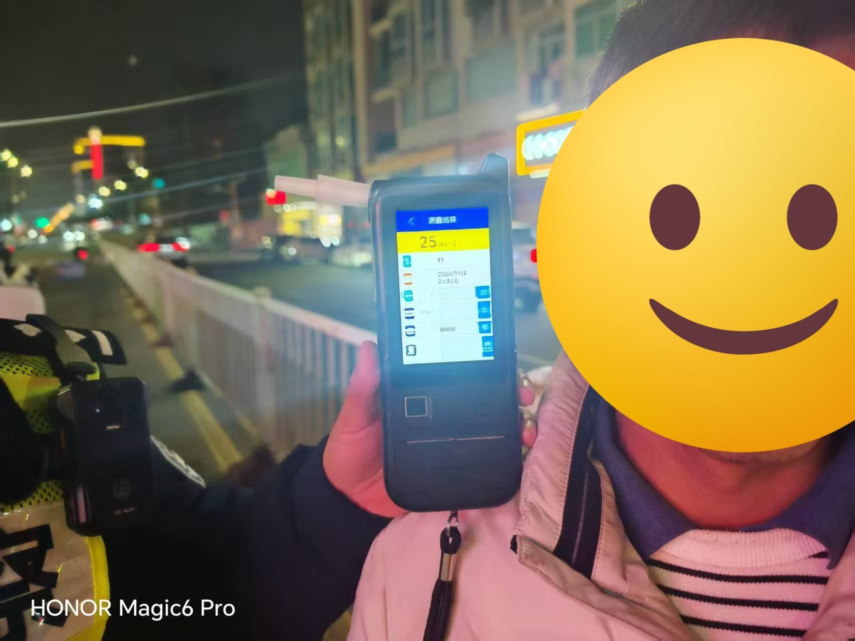 酒精测量结果:25mg/100ml