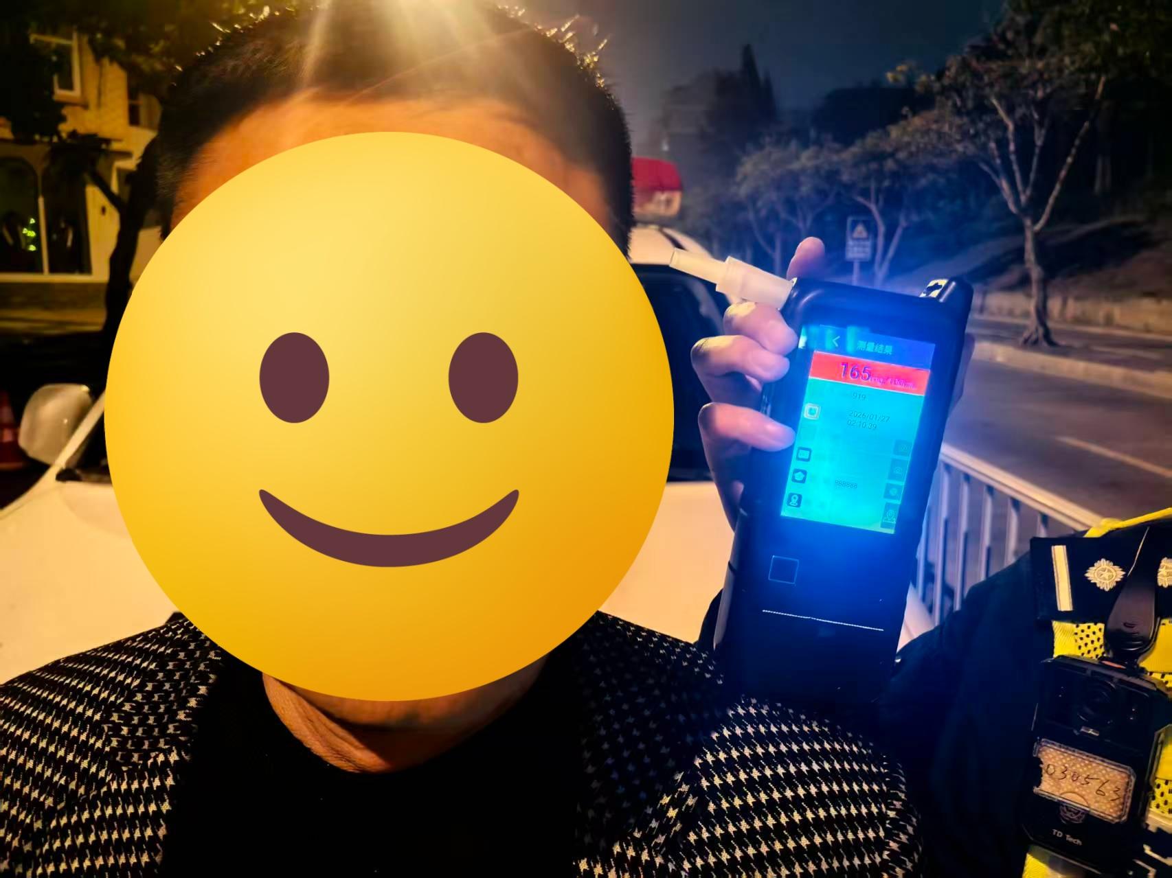 酒精测量结果:165mg/100ml