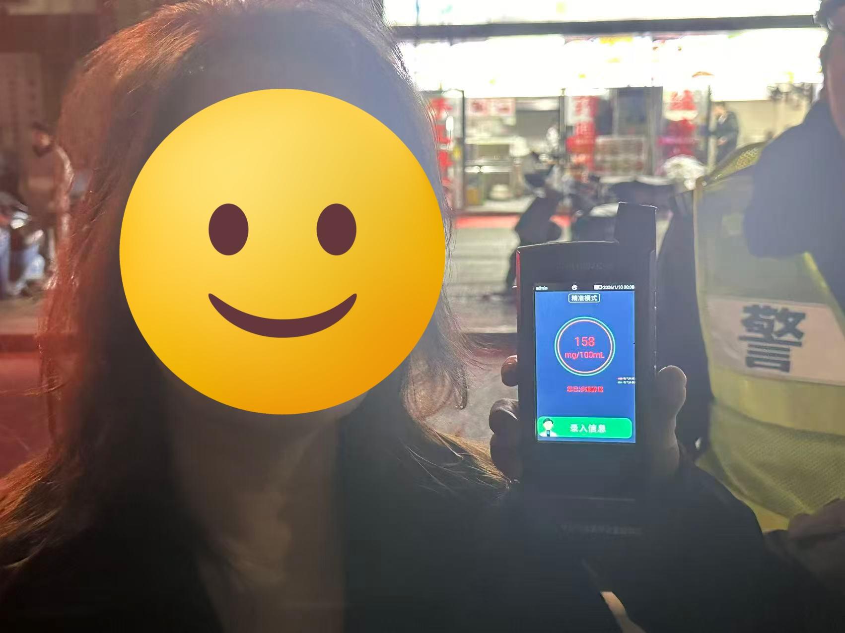 酒精测量结果:158mg/100ml