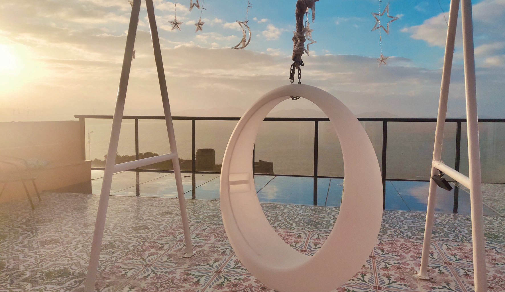 问及住民宿的体验如何,张先生说:“我们是在网络预订的,被这石头房子吸引,太有特色了,民宿的内部装修也很棒。我们住的是亲子房,里面还有秋千吊篮,小茶桌和日式风格的蒲团可以围坐,窗外就是大海,即使冬天坐在这里,不出门也是一种很好的体验。”