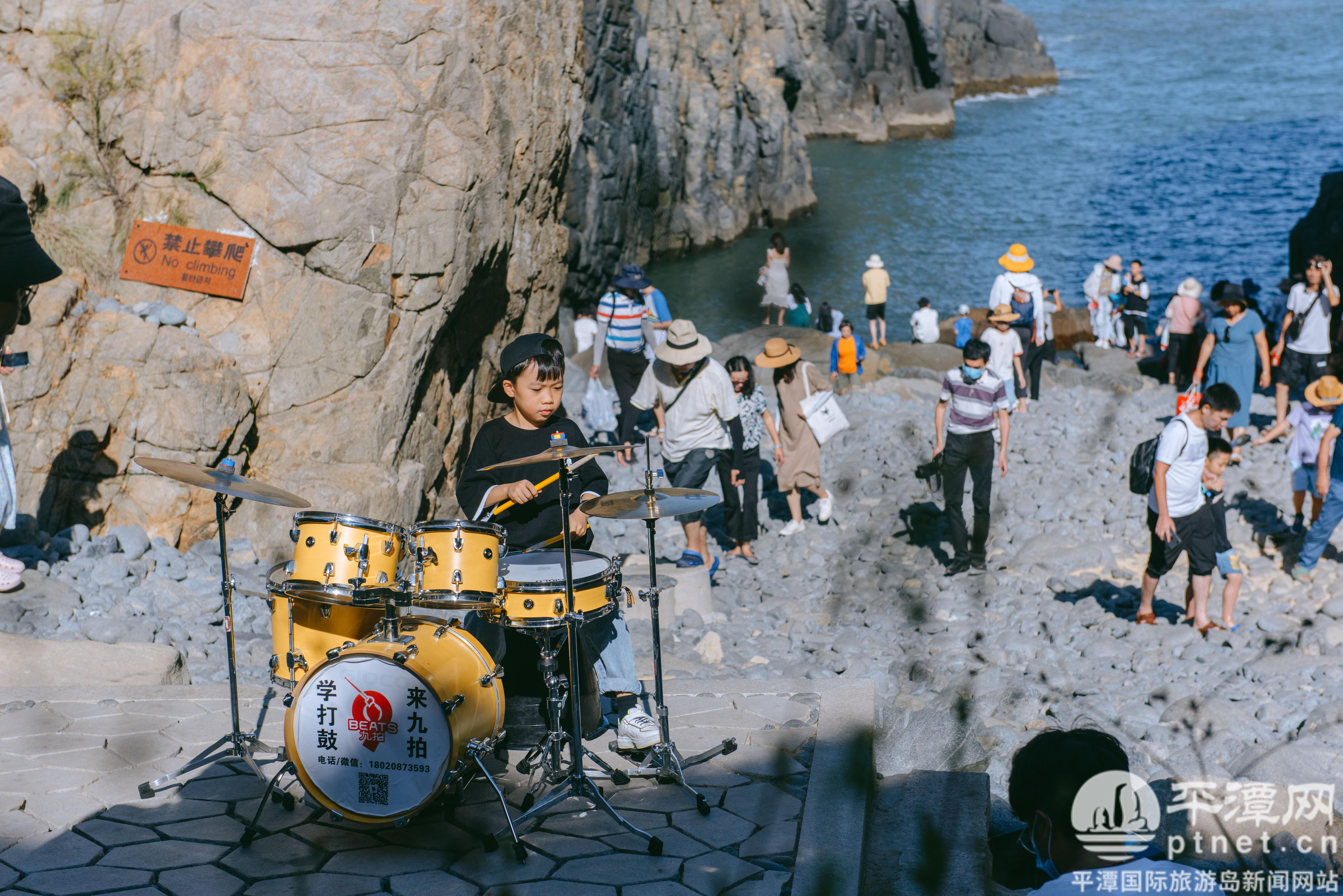 现场,音乐表演团队的成员通过架子鼓演奏、吉他组合弹唱、个人独唱的方式,演绎多首经典流行歌曲。精彩的演出吸引不少游客驻足观看,大家纷纷掏出手机拍摄。“我个人很喜欢架子鼓,没想到来景区能看到音乐演奏表演,他们唱得很用心。一边看海景一边听音乐,这样的体验很有趣。”四川游客陈俊康说。