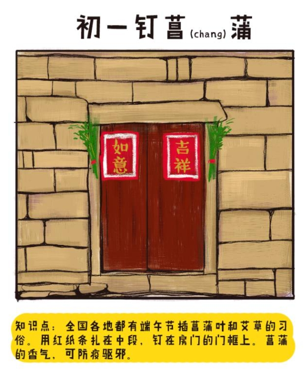 端午这天,会看到邻里家家户户在铁门的门框上系上一束菖蒲或是香茅,用红色的棉线或者胶带固定。我家却从来没有,也不知缘由。菖蒲绿过了初一,绿过了初五,往往一年都挂在原处,不知道是被户主遗忘,还是不舍得摘下。