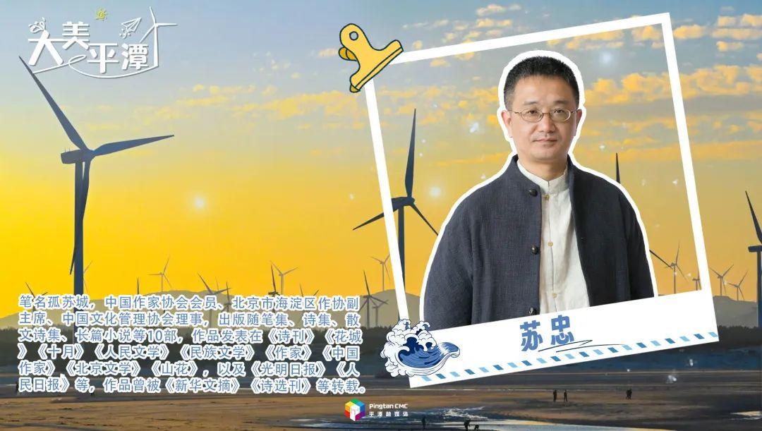 苏忠,笔名孤苏城,中国作家协会会员、北京市海淀区作协副主席、中国文化管理协会理事,出版随笔集、诗集、散文诗集、长篇小说等10部,作品发表在《诗刊》《花城》《十月》《人民文学》《民族文学》《作家》《中国作家》《北京文学》《山花》,以及《光明日报》《人民日报》等,作品曾被《新华文摘》《诗选刊》等转载。