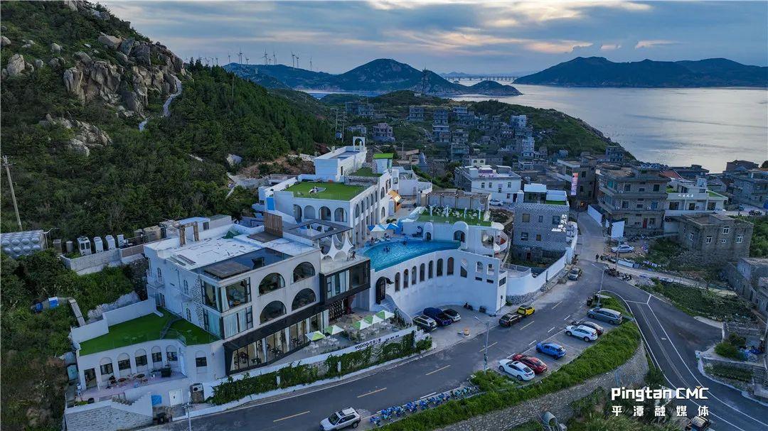 一批批平潭返乡青年也回到家乡逐梦。驾车沿着廊道一路往玉堂村方向行驶,村里那栋宛如城堡的白色民宿背靠石湾,坐于半山,让人以为穿越到了希腊的圣托里尼。这栋民宿有个诗意的名字——枕海入眠。每当夜幕降临,民宿灯火通明,客流源源不断。曾经,玉堂村是无人问津的“空心村”,如今已变成了以“山、海、田、渔”为基底,以“艺术文化、风情民宿”为支撑的特色旅游村。