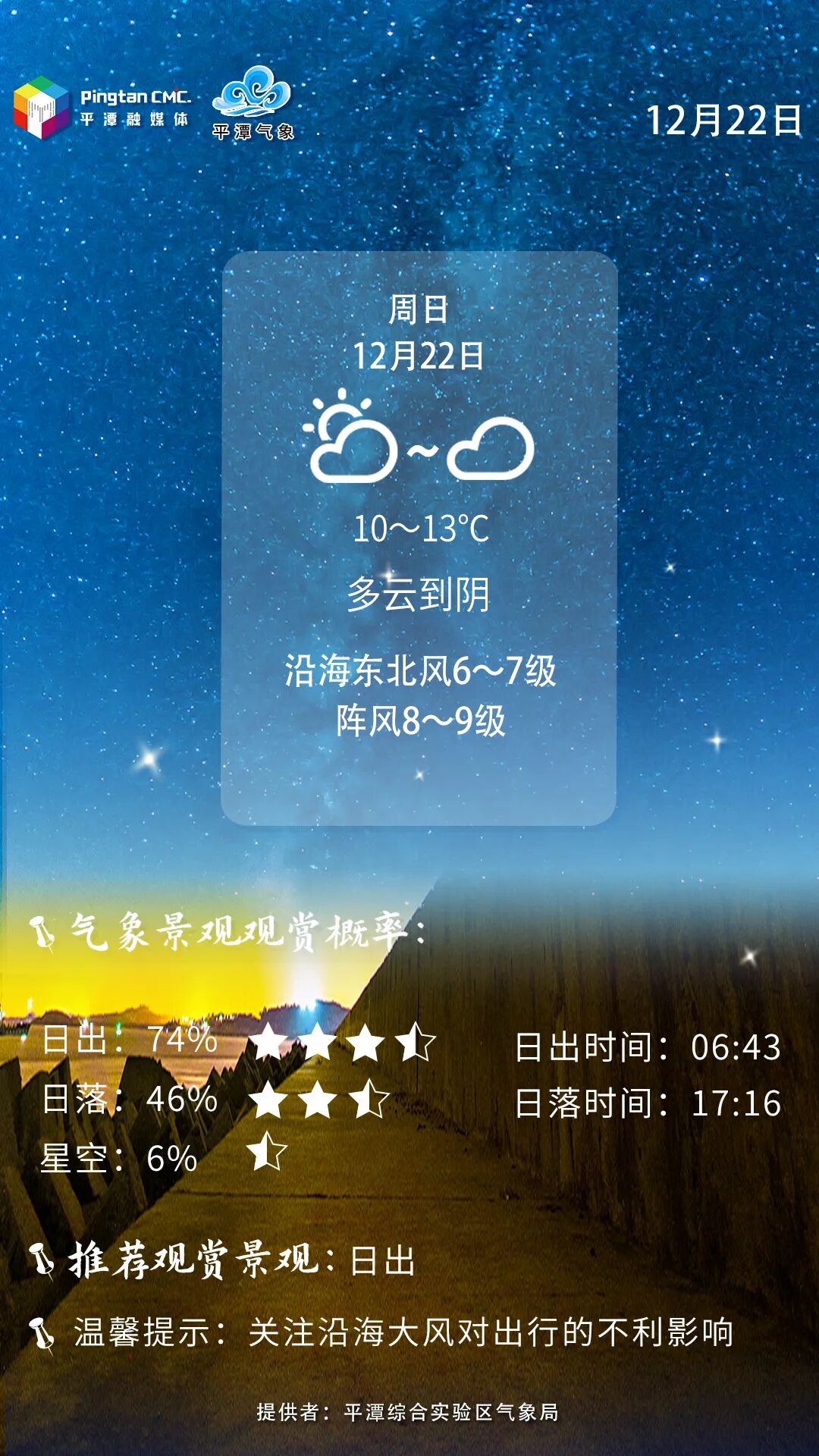 追日追星预报丨12月22日,“追日”概率龙王头74%,“追星”概率低