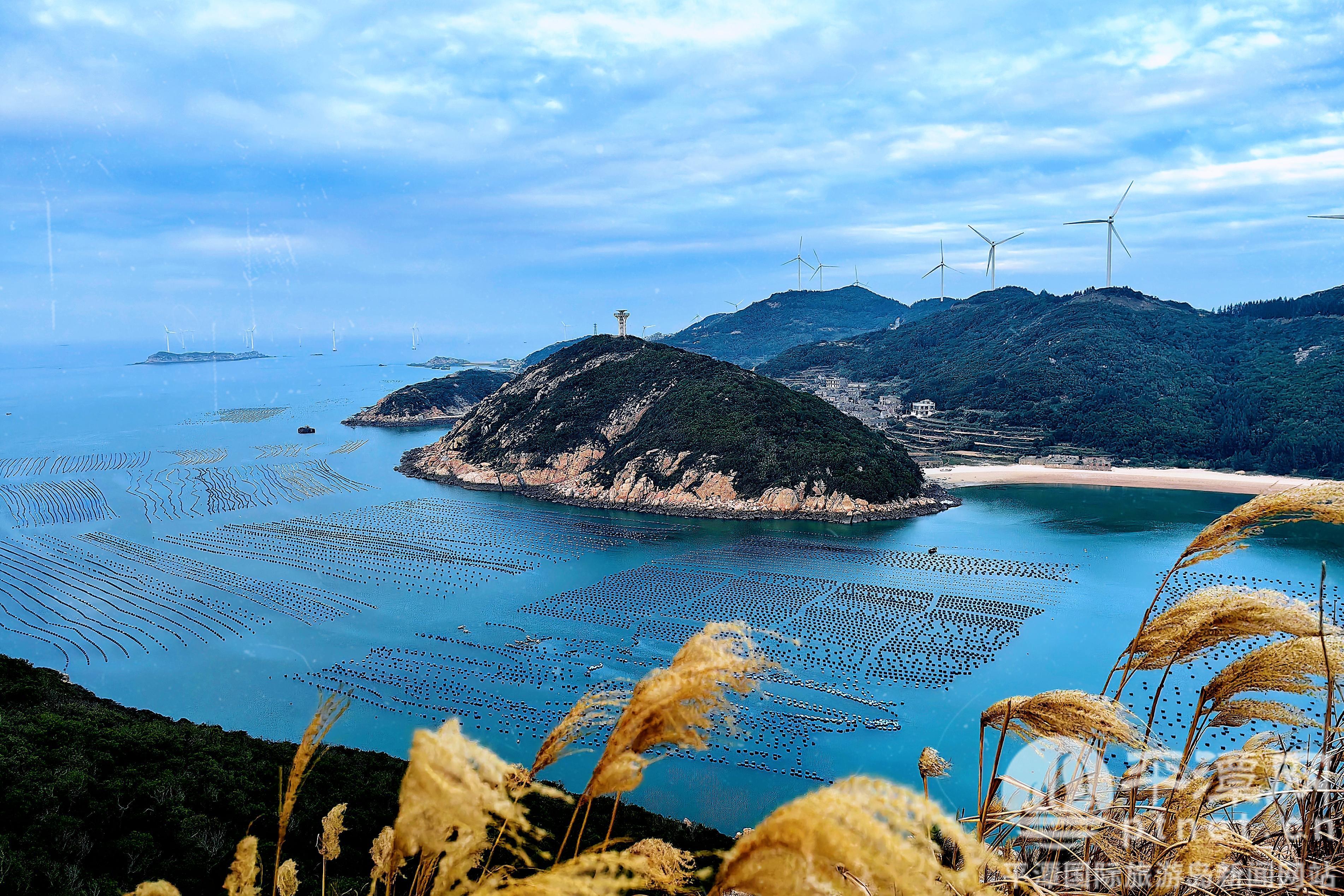 山下村落散落,绿野如茵,远处碧海无垠,绘就一幅自然和谐的诗意画卷。