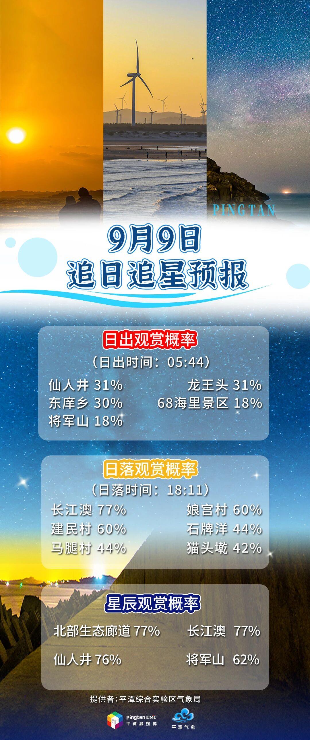 追日追星预报丨9月9日,“追日”概率长江澳77%,“追星”概率北部生态廊道77%