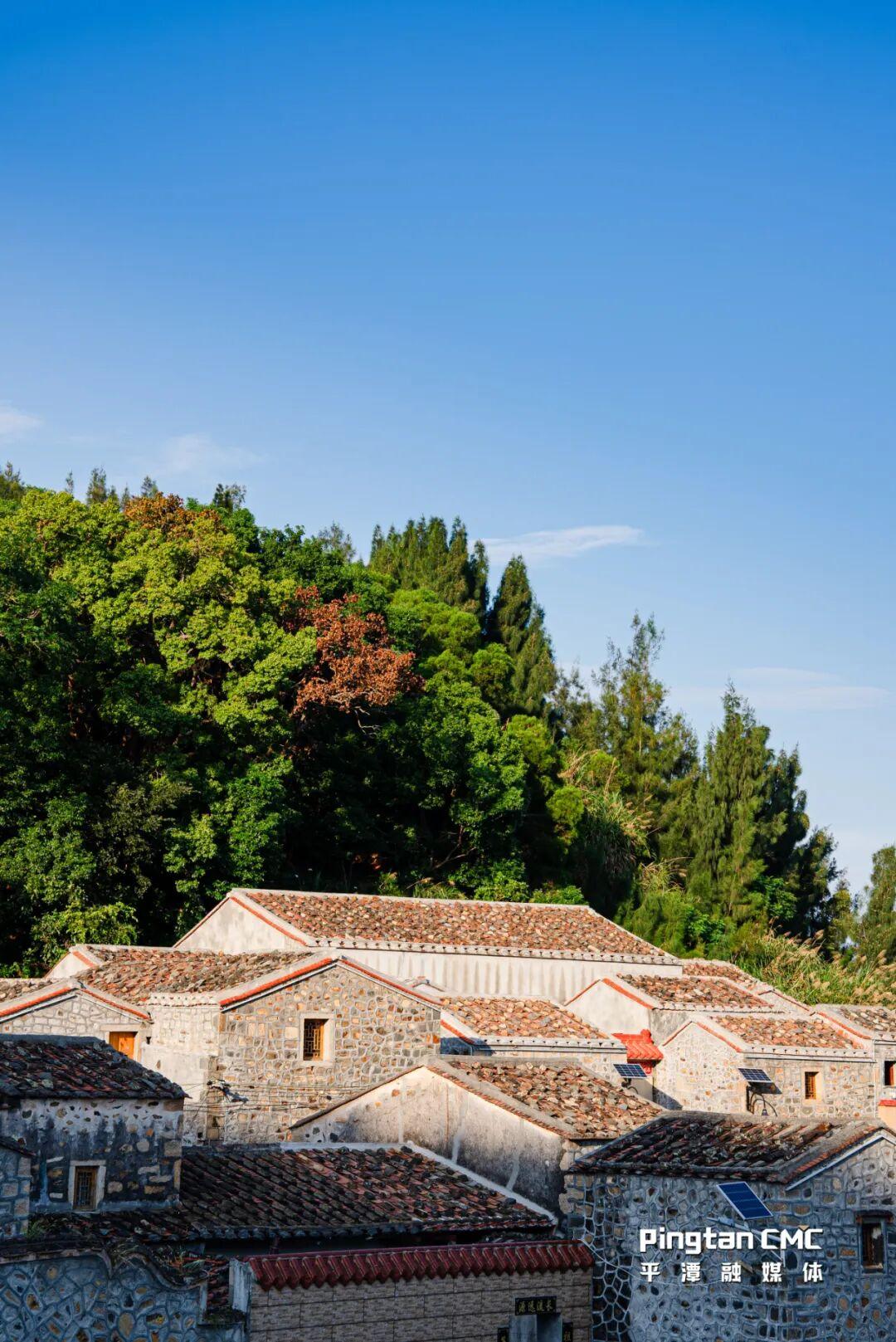 海风习习,翁祖学家围墙上的几盆鸡冠花、月季在风中摇曳。当我们离开村子时,夕阳的余晖打在老石厝的斜屋顶和石墙上,好似落了一层碎金。这些修缮完好的古厝,就像散落在岁月长河中的一枚枚青灰色印记,它不只是一座石头垒砌的建筑,更是血脉相连的地图,是海岛人童年记忆中的珍宝,它封存着祖辈的呼吸、灶膛的暖意和屋檐下风雨中的细语。