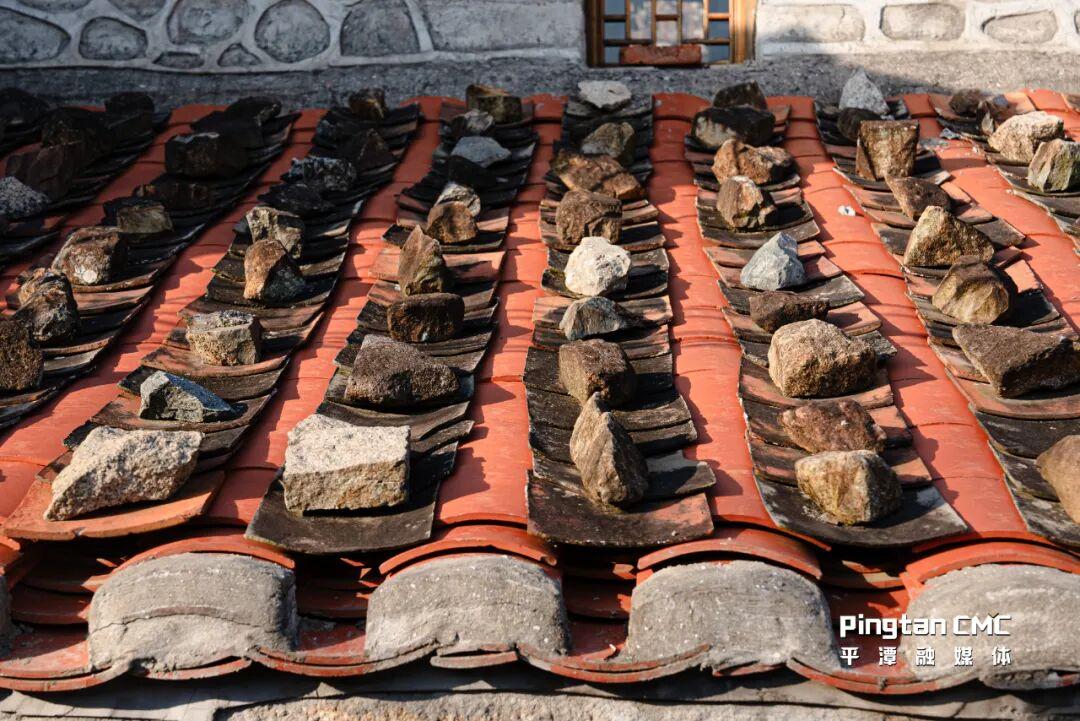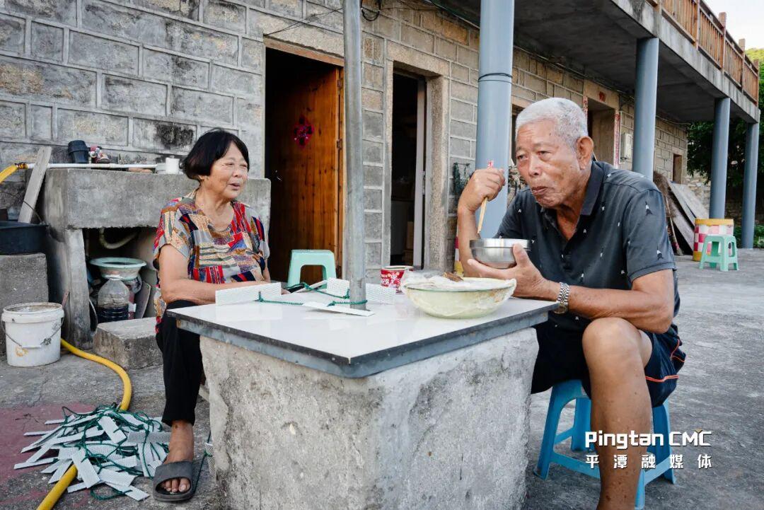 谈话间得知,二老一共养育了8个子女,6个男仔,2个诸娘子(平潭话,指女儿)。看着厝里墙壁上的全家福,五代同堂加起来好几十人,二老脸上满是笑容,连声说:“平潭人赶上了好时代啊,我们这代人还能看到大桥通车,坐上动车去福州,好啊……”从屋里走出来,我看了看门牌号——娘宫村官井底93号,再望望保存完好的瓦片屋顶,上面压着各类形状的石头。老人朝我们挥手道别,热情地邀请我们有空再来“说世事”(平潭话,指聊天)。