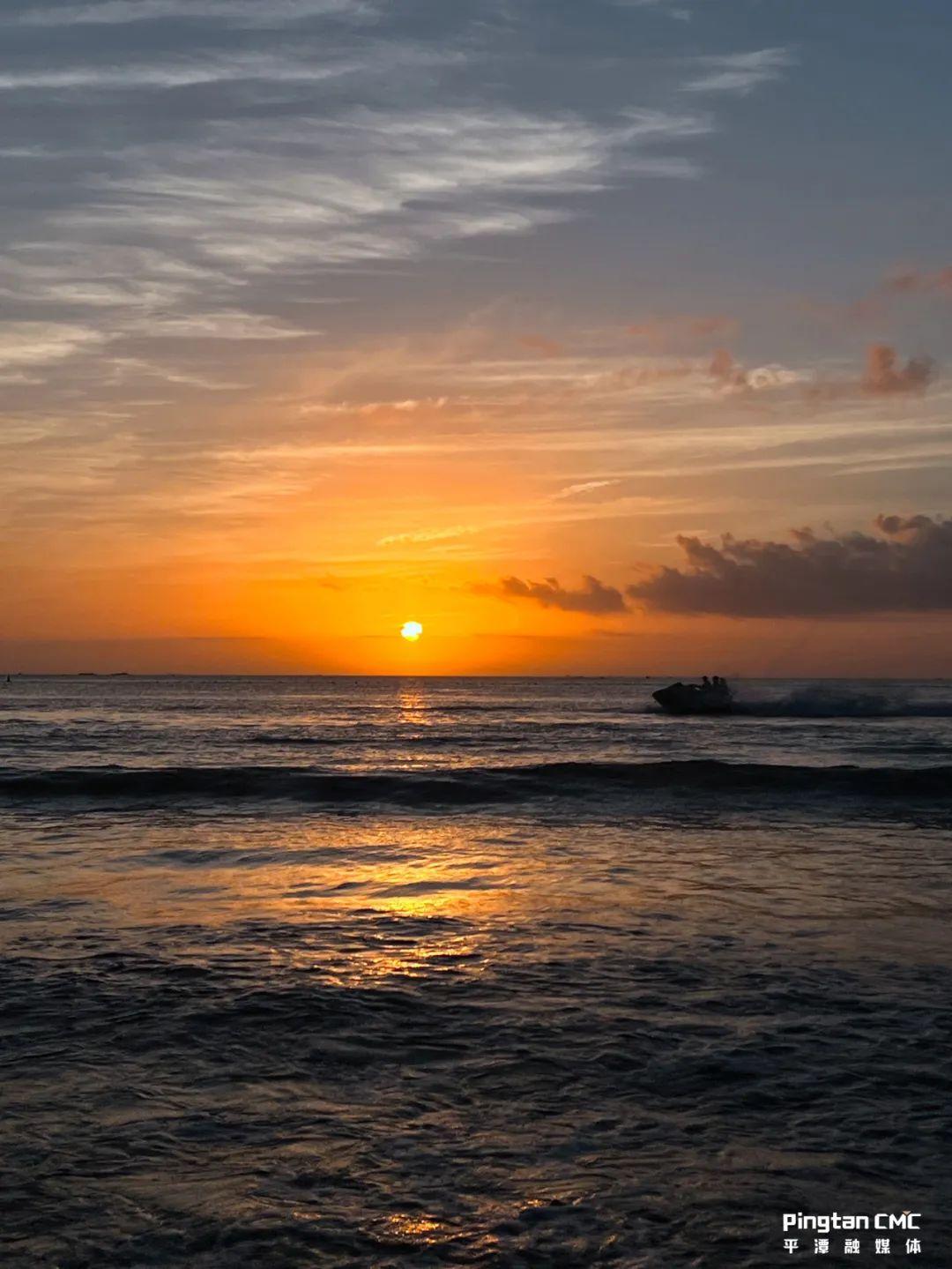 离岛天藏,其卓朗朗。弄潮观涛,击水戏浪。日晓升兮波溶金,云裂彩兮金万丈。玉屑千堆,踏歌徐行;雪浪一线,弄潮跌宕。涛声吼地来,雷霆响天降。龙王头卷沙呢喃,长江澳砌玉嘹亮。至若潮生时分,银滩跃金,鸥影缀天;渔舟归晚,载月入港。西风卷海,蓑笠孤兮波潋滟;怒涛远声,白鹭翩兮天清爽。篙为笔兮写狂草于沧海,桨为尺兮绘华彩于艨艟。观鱼乐兮听潮汛,心有帆兮海无疆。