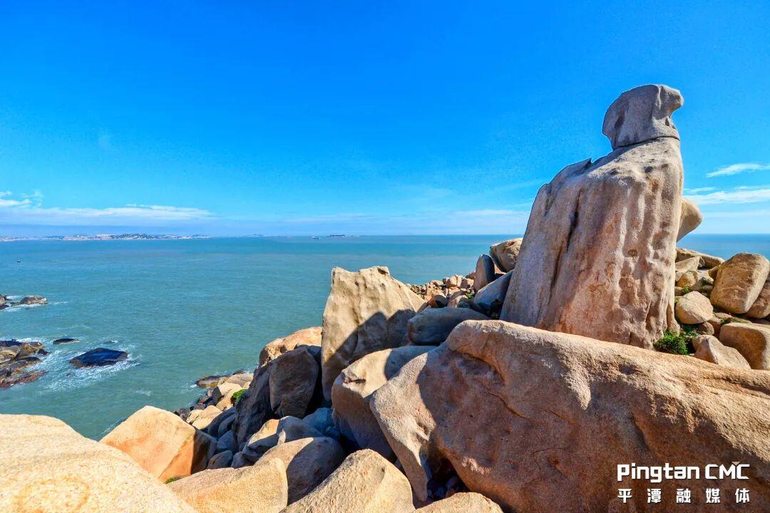 移步换景,若从西侧仰望海山公,石像竟奇妙地一分为二,轮廓缠绵婉转,宛如一对相偎的恋人,在涛声中倾诉着亘古不变的情话。这奇绝景致,恰似平潭人大海般刚柔并济的性情:既有大丈夫的勇敢与刚毅,又蕴含温润的包容与柔情。