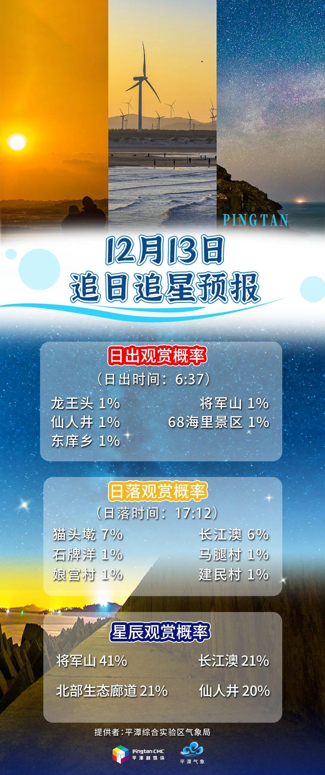 追日追星预报丨12月13日,“追星”概率将军山41%,“追日”概率猫头墘7%