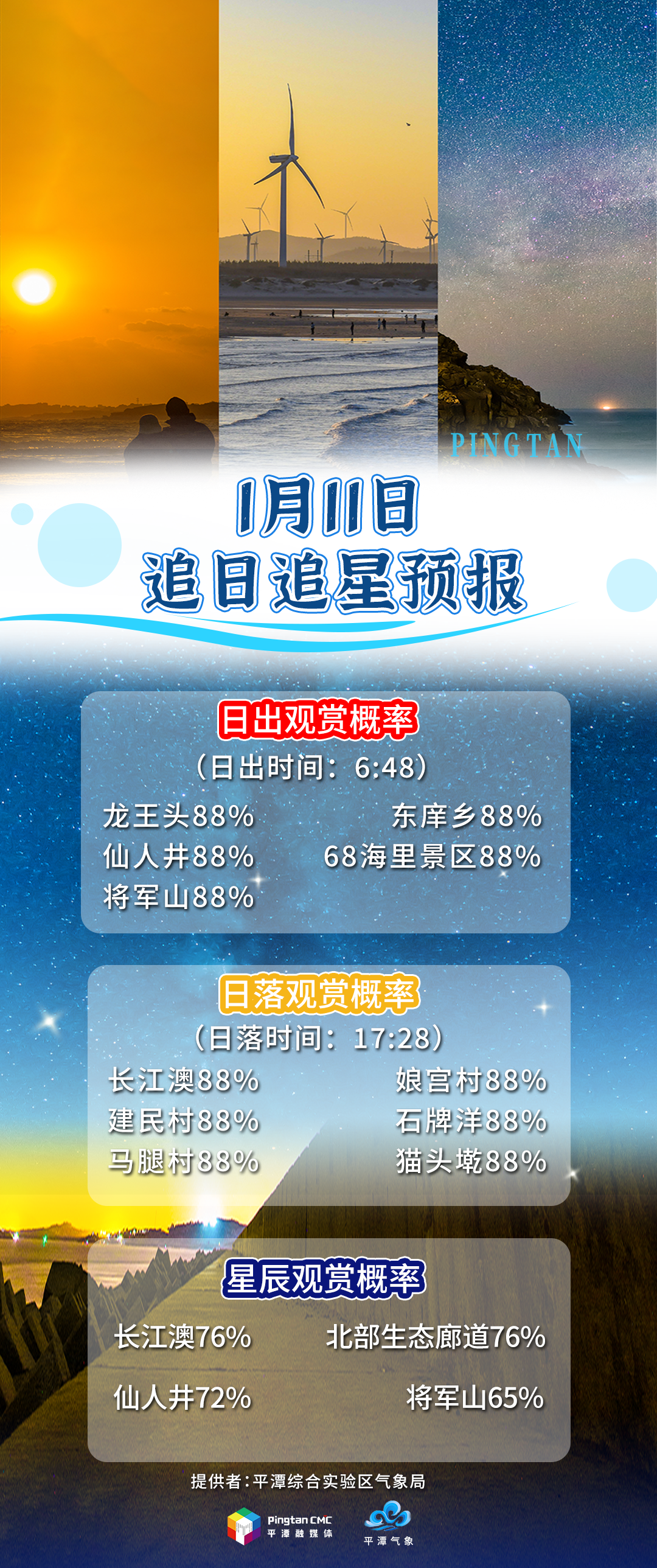 追日追星预报丨1月11日,“追日”概率龙王头88%,“追星”概率长江澳76%