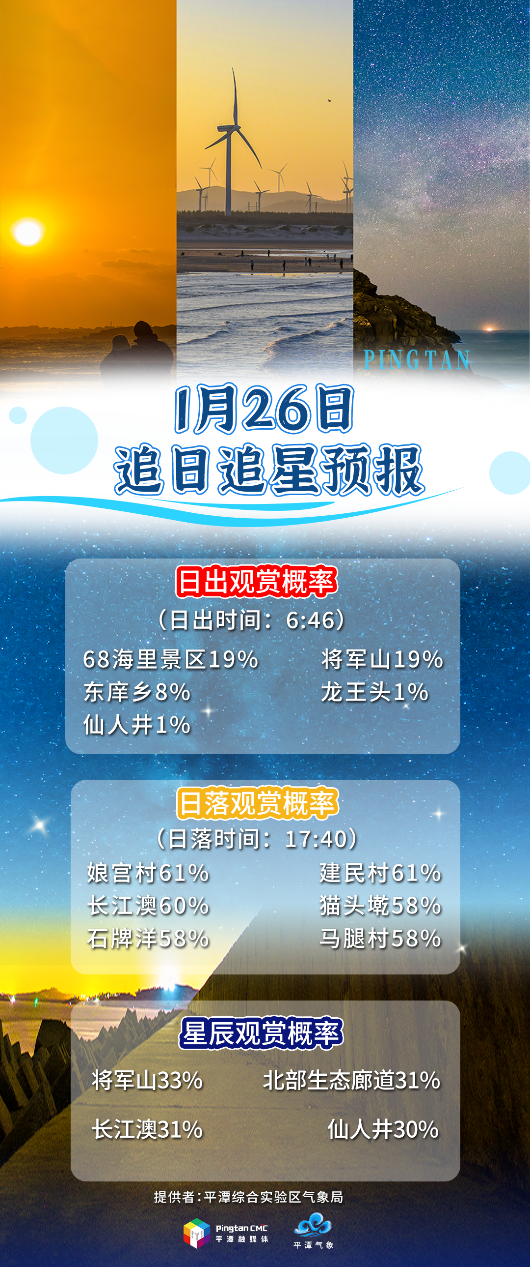 追日追星预报丨1月26日,“追日”概率娘宫村61%,“追星”概率将军山33%