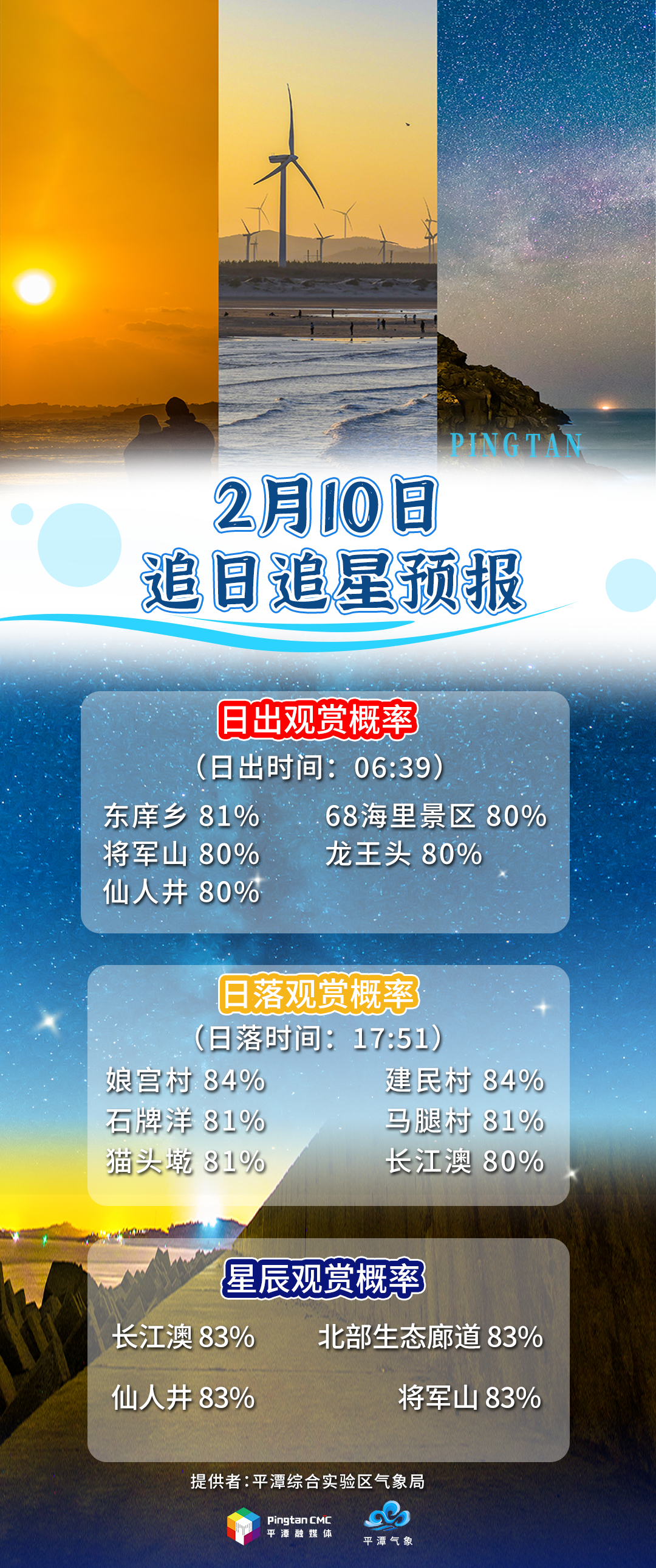 追日追星预报丨2月10日,“追日”概率娘宫村84%,“追星”概率长江澳83%