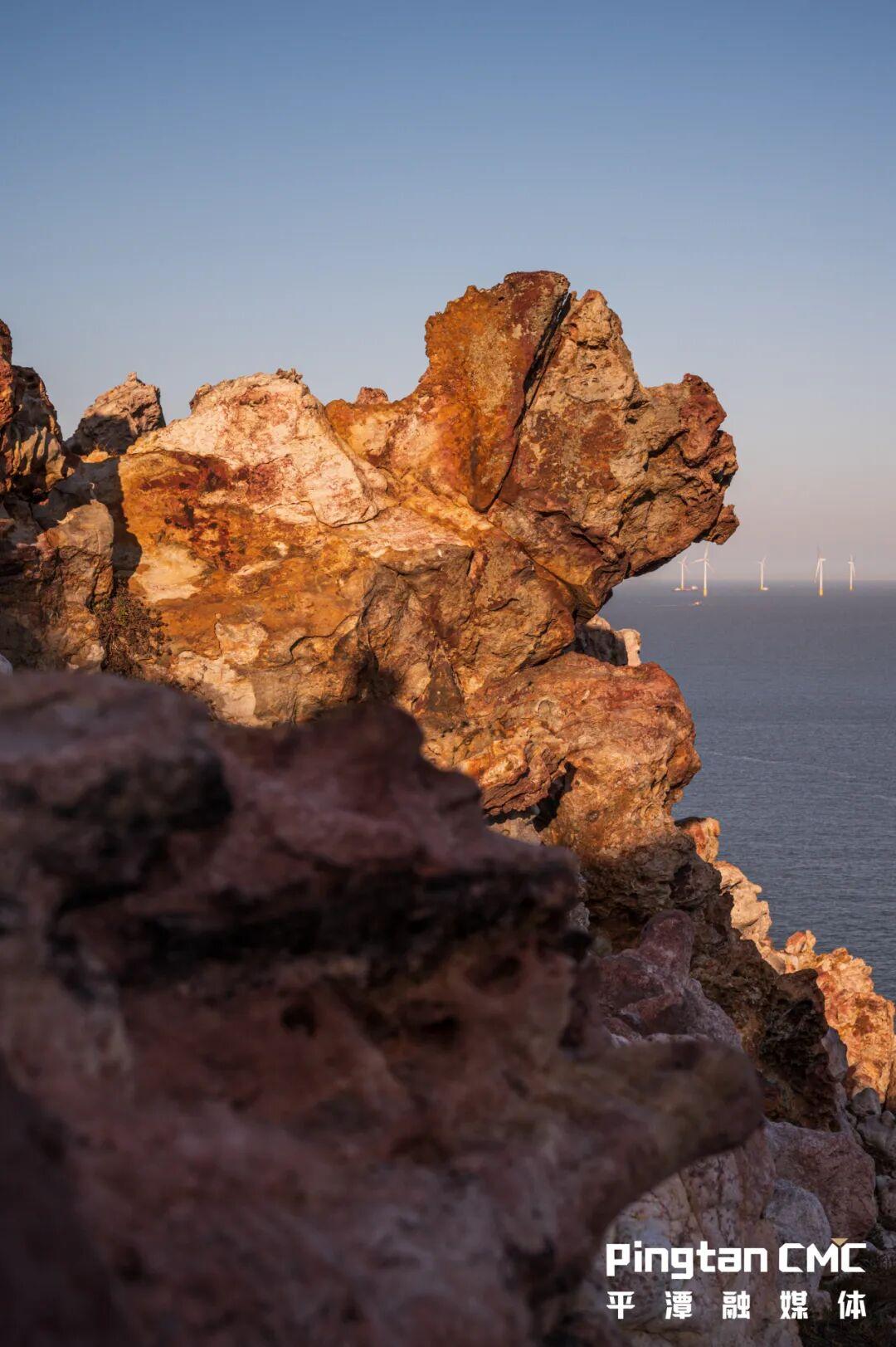村民说,山上有“十八学士石”,还有像十二生肖的石头。我爬了半天山,只看到几块略像动物的石头,也不知是不是传说中的那些。不过也没关系,就算认不出来,自己遐想一番也挺有意思,不必非得跟真的一模一样。大练岛的妙处,正在这似与不似之间——石形可拟而无意拘泥,景致可观而不必尽解。夕阳西下,余晖染透火山岩层,赭红渐转为金褐,恰似杜甫所赞“丹青不知老将至”的天然设色。
