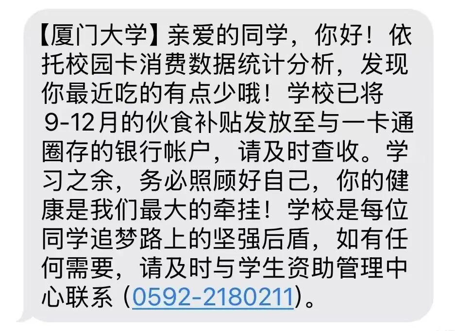 厦门大学给学生发的暖心短信。图源网络