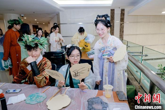 下午的清明游园会上,两岸学子一起体验清明民俗:制作青团、手绘纸鸢、绘制团扇、体验汉服、编织柳枝花环……来自台湾台中的王翊安目前正在华东师范大学就读,他说,这些多元的活动让今年的清明节很有仪式感,可以让两岸年轻人不仅在理论上更在实践中,感受清明文化的内涵和传承。
