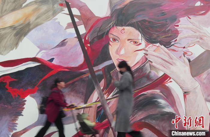 3月4日,《哪吒2》墙绘在浙江杭州湖滨路步行街展出,哪吒、敖丙、申公豹等角色形象吸引游人关注。(资料图) 中新社记者 王刚 摄