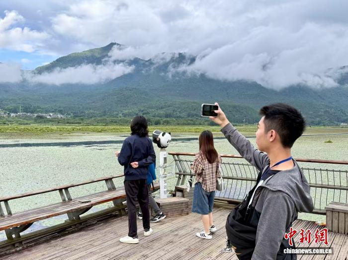 8月18日,台湾嘉宾在腾冲北海湿地赏景。陆希成 摄