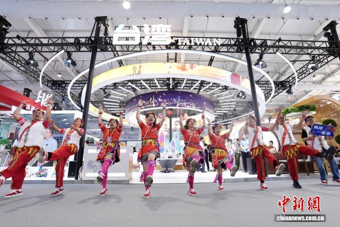 9月10日,2025年中国国际服务贸易交易会在北京首钢园开幕。图为台胞在台湾形象展外表演台湾少数民族舞蹈。 张祥毅 摄