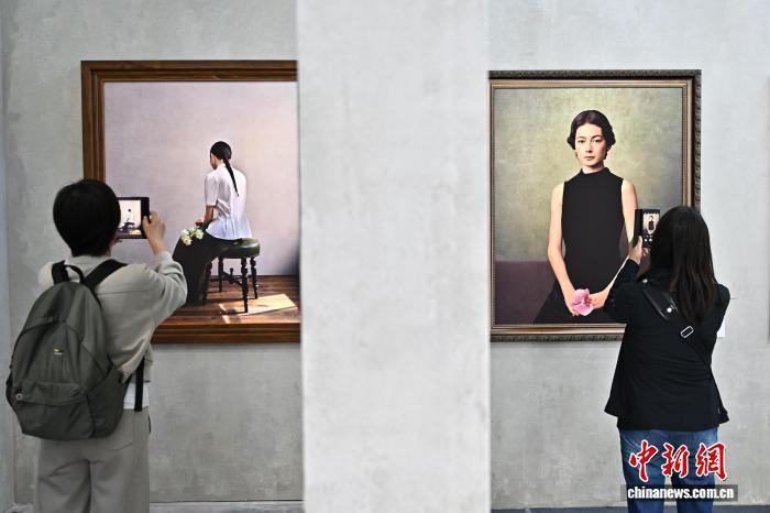 9月19日,摄影爱好者参观台湾摄影师卢伟的作品《肖像展》。中新社记者韦亮摄