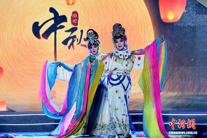 9月28日晚,第六届海峡客家中秋晚会在福建省龙岩市龙津湖公园举行。图为情景表演《霓裳奔月》。中新社记者 张金川 摄