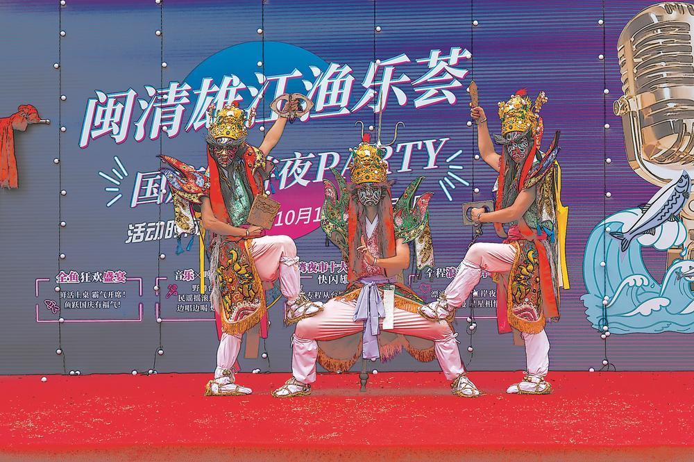 在“闽清雄江渔乐荟·国庆福游夜PARTY”活动上,“官将首”非遗阵头民俗表演登台亮相。