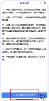 3.在“申请须知”界面,认真阅读须知后,点击“已阅读并同意申请须知”。