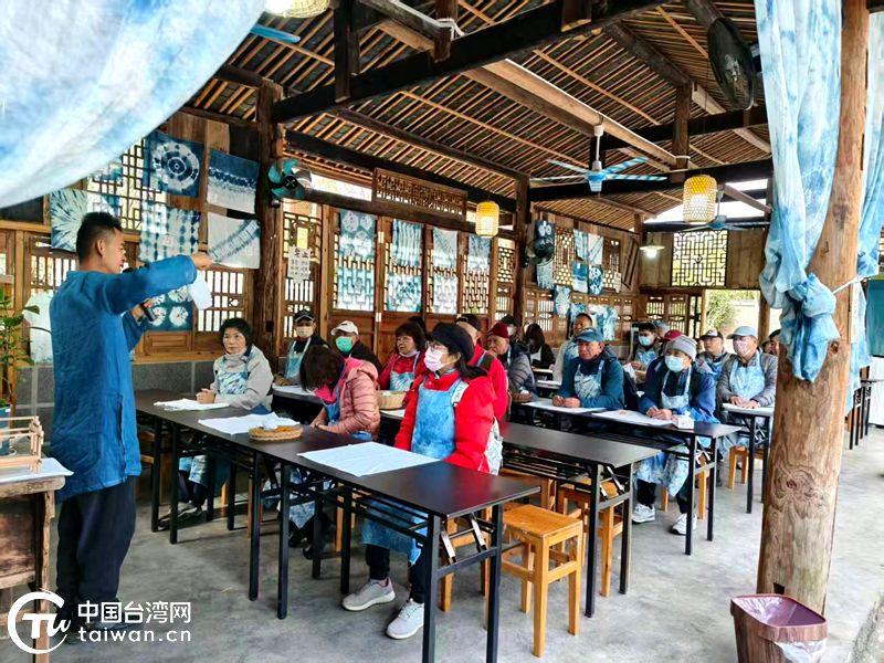 台湾苗栗县参访交流团学习布依族传统扎染技艺。(中国台湾网发)