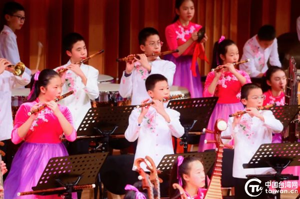 上半场音乐会由四所民乐教育基地校接力演出,厦门海沧延奎实验小学民乐团以《忙夏》收束上半场。(中国台湾网发)
