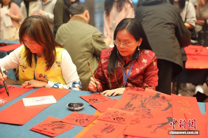台湾书法家台北挥毫送春联 笔墨传情迎马年