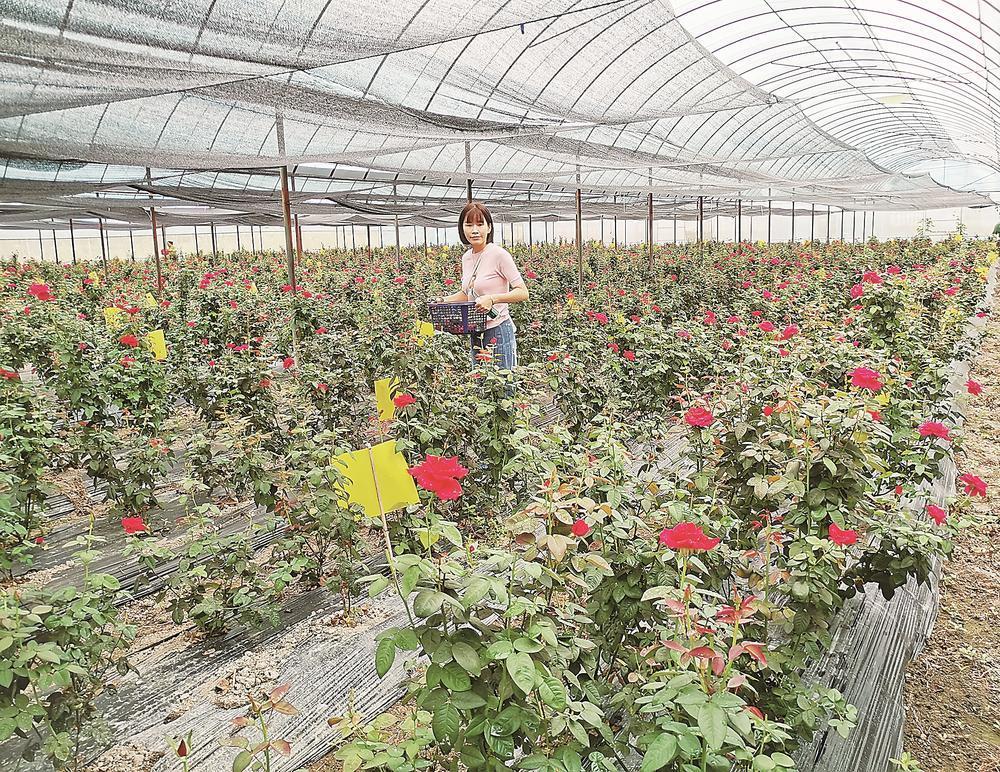 过去的玫瑰种植常受制于气候,“靠天吃饭”是常态。如今,依托智能环控系统,基地彻底打破季节限制,实现全年开花、日产日收。“这种玫瑰最怕雨水,露天种容易烂根烂花。”林春发介绍,通过专业化大棚种植,基地实现了全年365天稳定开花、每日可采。一亩地种植约1500株,每株年均开花超300朵,亩产鲜花生花达4500斤。依托“订单农业”模式,上海总公司保底回收,亩产值近9万元。