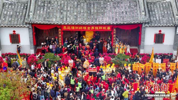 2月24日,莆台同胞护驾妈祖金身回上林故居省亲布福活动在福建莆田湄洲岛举行。 林春盛 摄