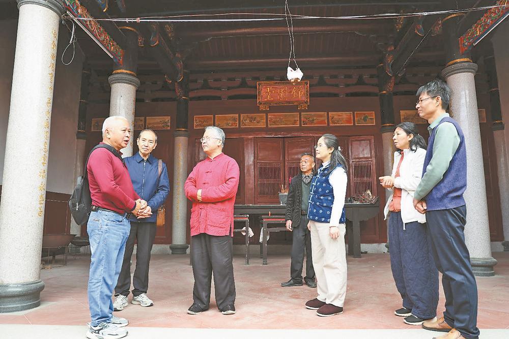 “和之前只是回祖庙上香、烧纸钱不同,这次回来有熟悉族史的宗亲会会长讲解介绍,我对家族渡海赴台的细节有了更具体深入的了解。”薛仁明说,300多年前,他的家族从今天的山重村渡海赴台,到他已是在台湾定居的第十二代。2015年,薛仁明的父亲脑梗初愈就与母亲带着两个孙女回了山重村。当亲眼见到先辈念念不忘的祖籍地,薛仁明对原乡的认识变得生动而具象。这次参观山重村迁台记忆馆,他特意在父母当年在薛氏家庙的合影图片前拍照留念。