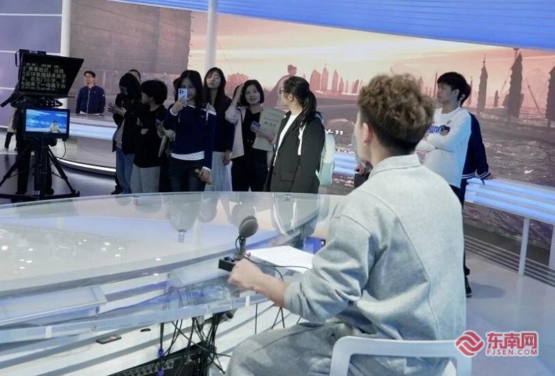 当天下午,营员们还走进福建省广播影视集团,在沉浸式视听体验馆,营员们通过裸眼5D影像技术,身临其境地感受视听表达方式的创新升级,直观了解前沿技术在内容呈现中的应用场景。在台史展厅,大家系统参观了福建广电事业从无线电广播到融媒体矩阵的完整发展历程,感受传统媒体在技术迭代与产业变革中不断转型突破的时代脉络。在融媒体中心演播厅,同学们站上主播台体验新闻播报全流程。随后,营员们与海峡卫视节目制作团队进行面对面交流。