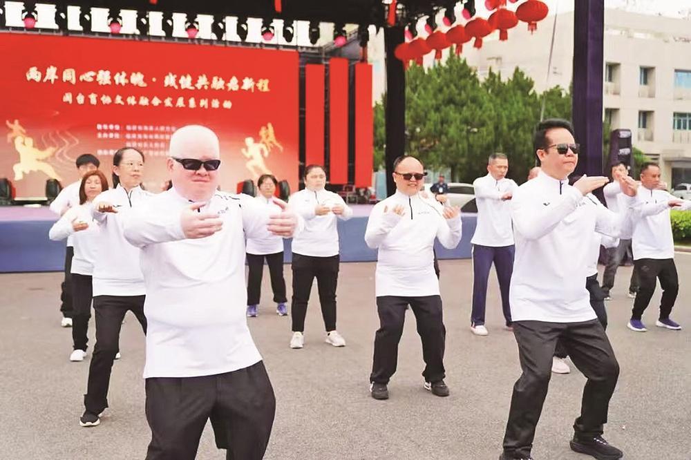 活动现场,闽台盲人共练太极。