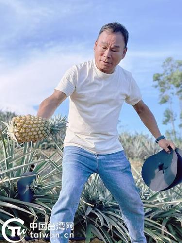 项明祥在田里展示他种的台湾金钻凤梨。(中国台湾网发)