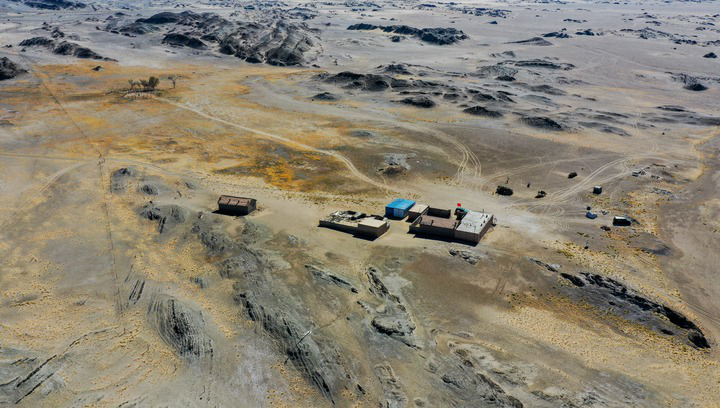 在内蒙古阿拉善右旗塔木素布拉格苏木最北端,中蒙两国边境,一条新修的砂石路穿越荒凉戈壁直通尼玛老人家门口。